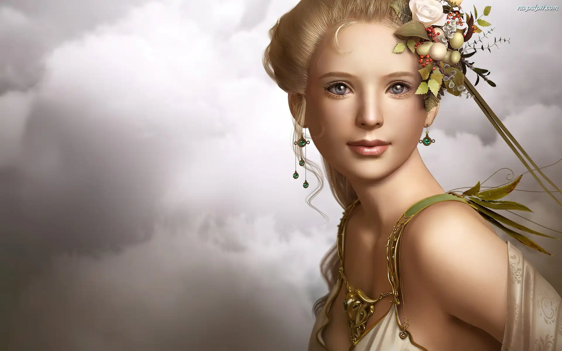 Włosach, Kwiaty, Kobieta, We Na Pulpit