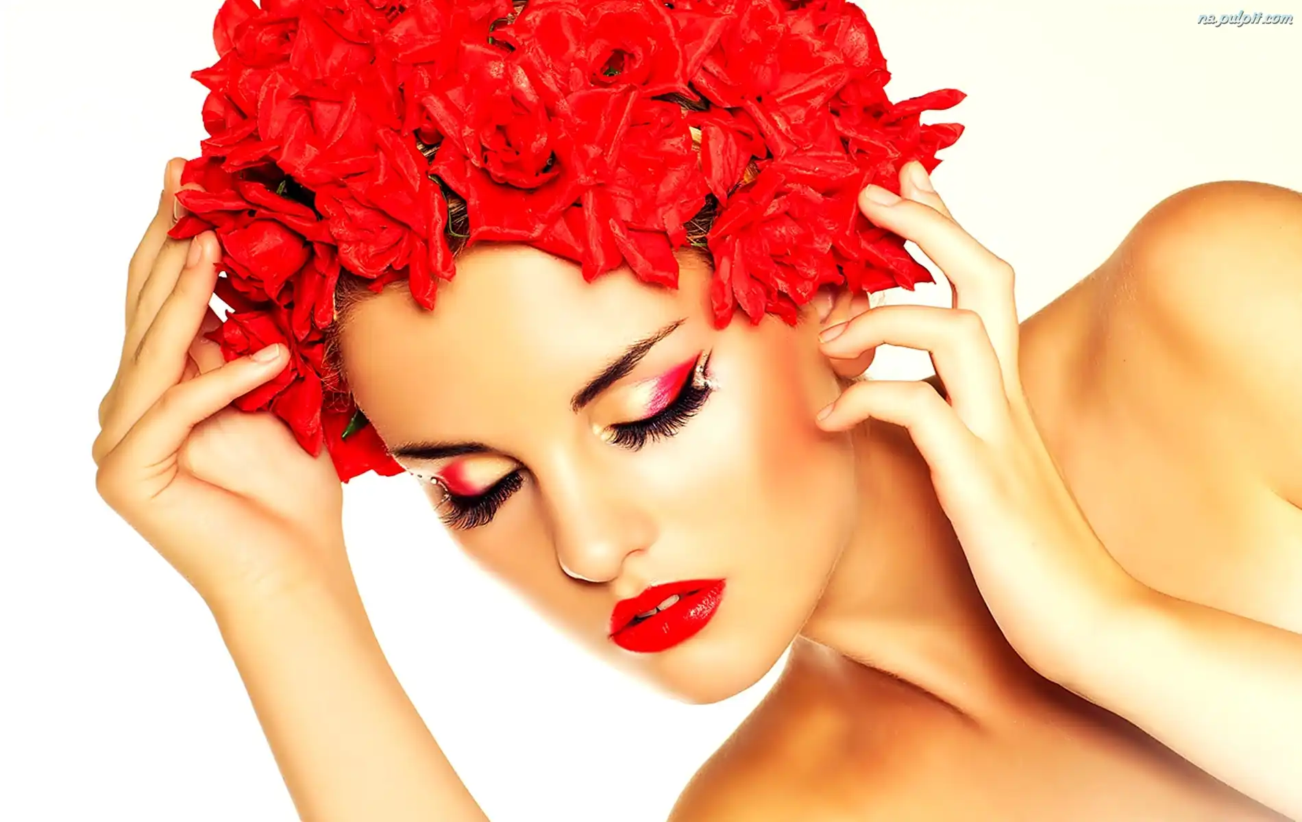 Włosach, Kwiaty, Twarz, Kobieta, We Na Pulpit