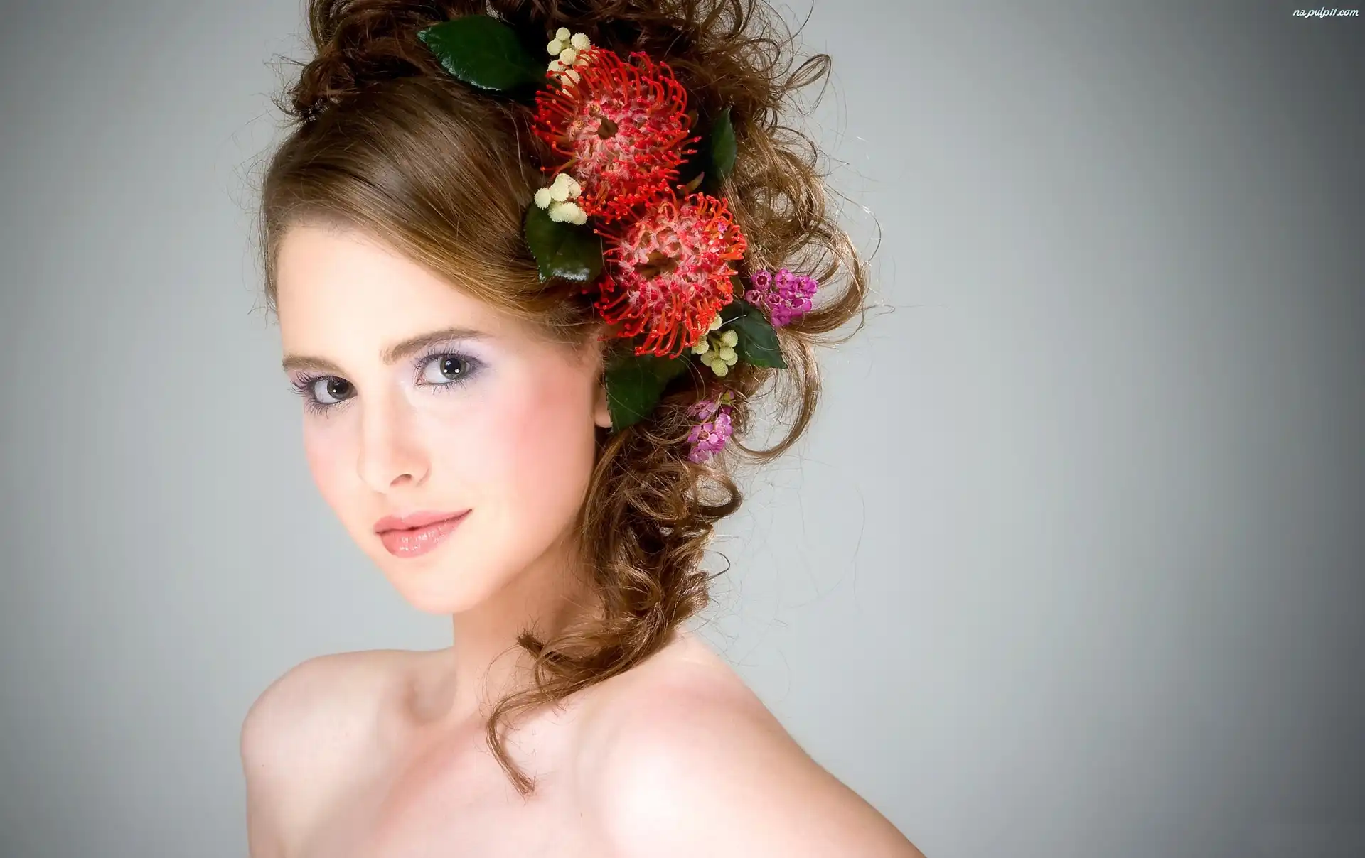 Włosach, Kwiaty, Kobieta, Piękna, We Na Pulpit