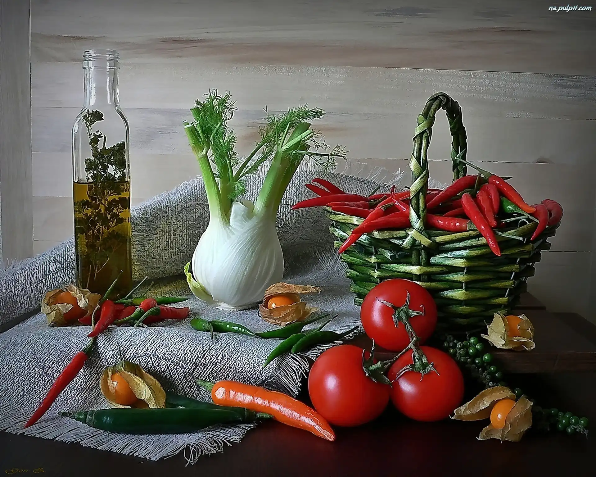 Koszyczek, Włoski, Oliwa, Pomidory, Papryczka, Koper, Marchewka Na Pulpit