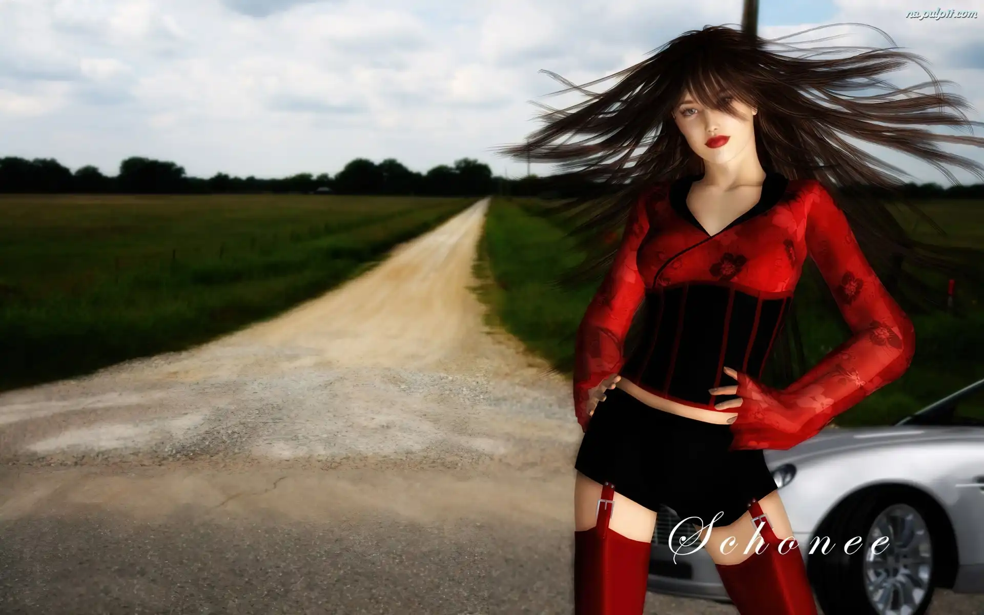 Włosy, Dziewczyna, Samochód, Droga, Rozwiane