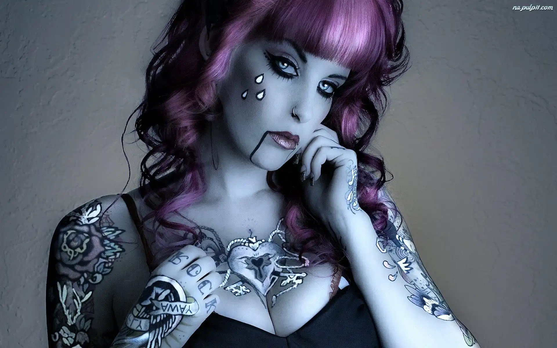 Włosy, Tatuaże, Dziewczyna, Fioletowe Na Pulpit