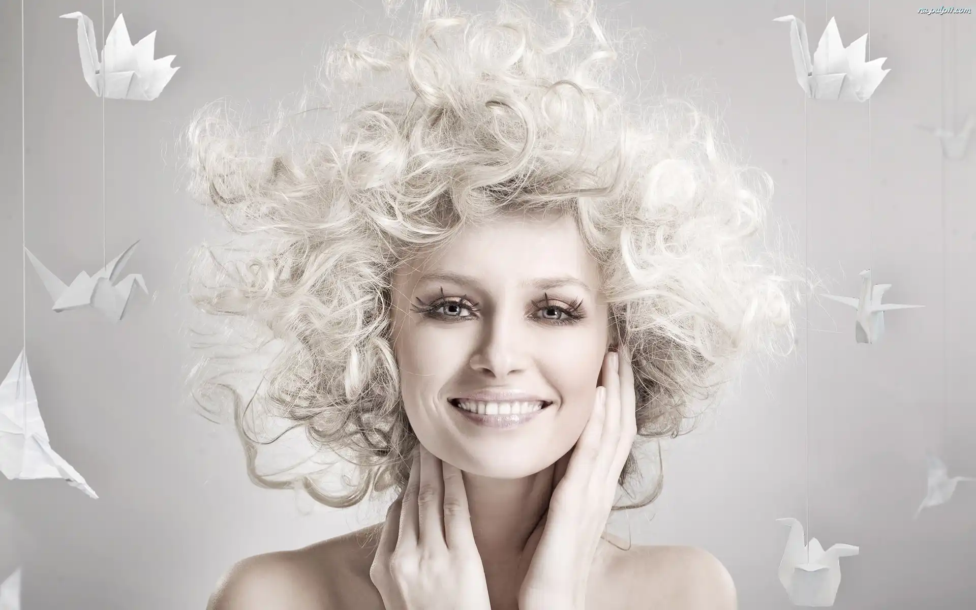 Włosy, Makijaż, Kobieta, Białe Na Pulpit