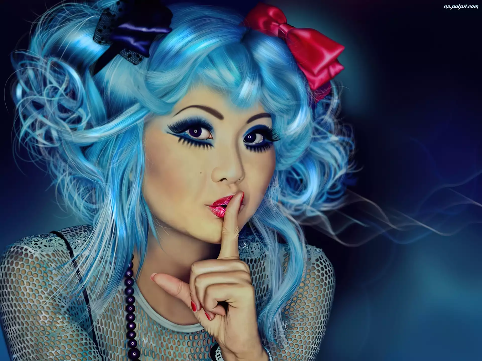 Włosy, Makijaż, Kobieta, Niebieskie Na Pulpit