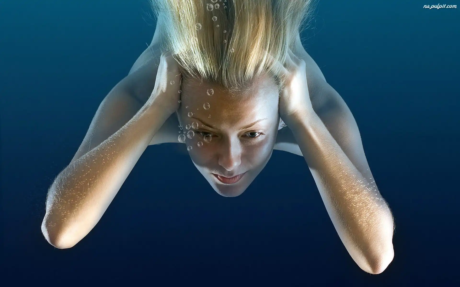 Włosy, Wodą, Pod, Kobieta, Ręce
