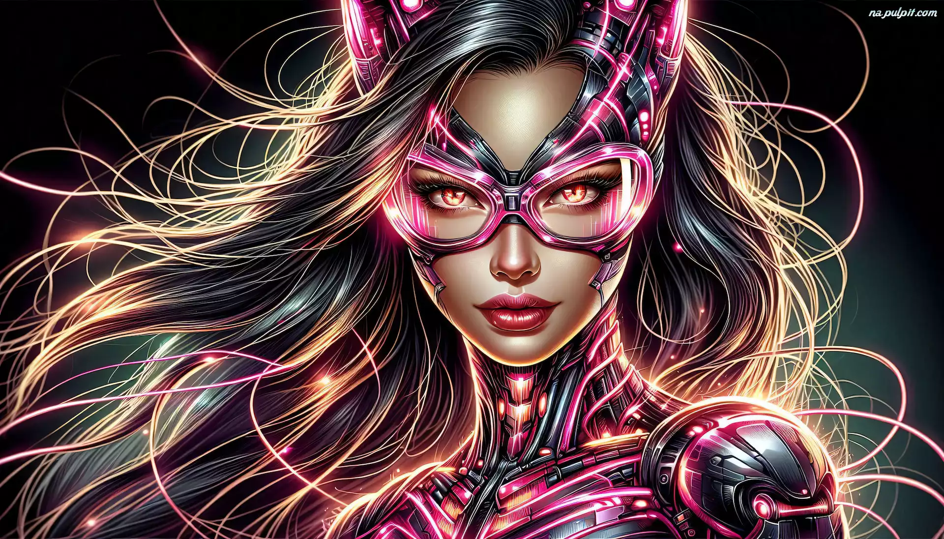 Rozświetlone, Kobieta, Maska, Włosy, Grafika, Robot Na Pulpit