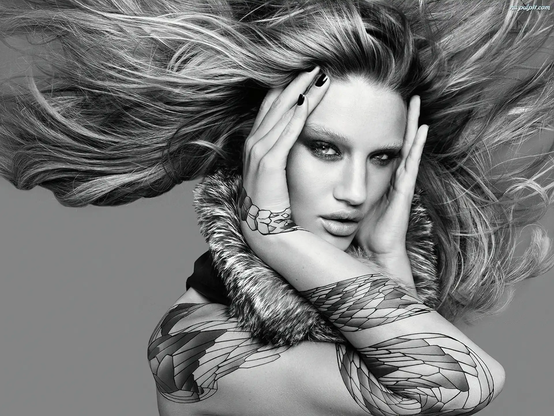 Włosy, Tatuaż, Rosie Huntington Whiteley, Rozwiane Na Pulpit