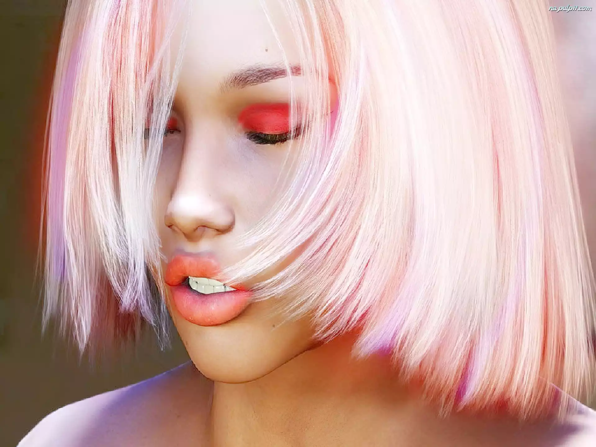 Włosy, Dziewczyna, Zamyślona, Różowe