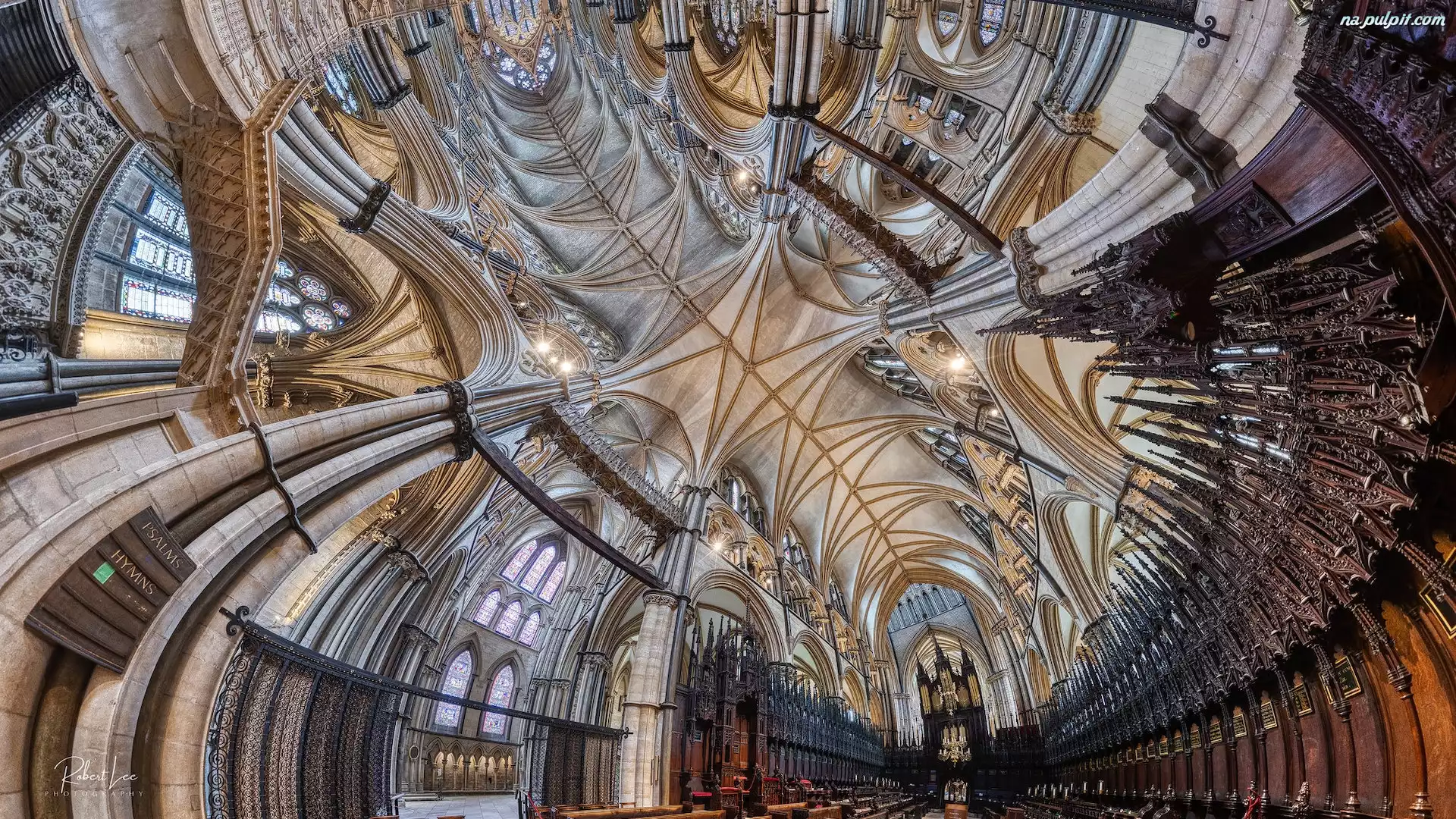 Wnętrze, Katedra, Lincoln, Anglia, Panorama sferyczna Na Pulpit
