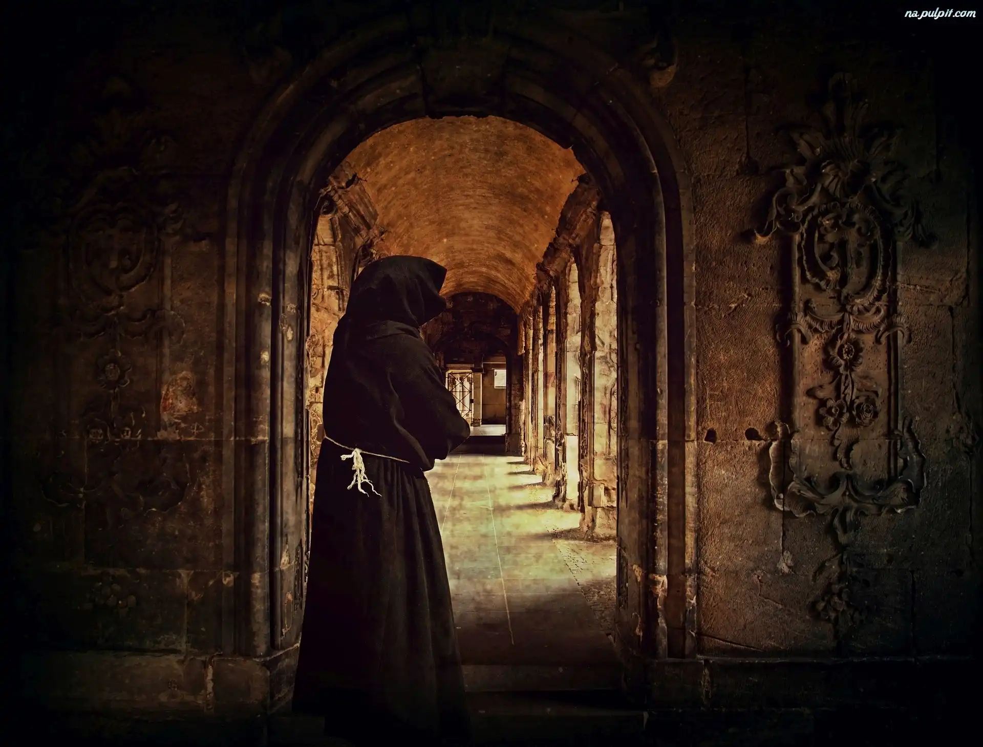 Wnętrze, Klasztor, Mury, Zakonnik, Sklepienie