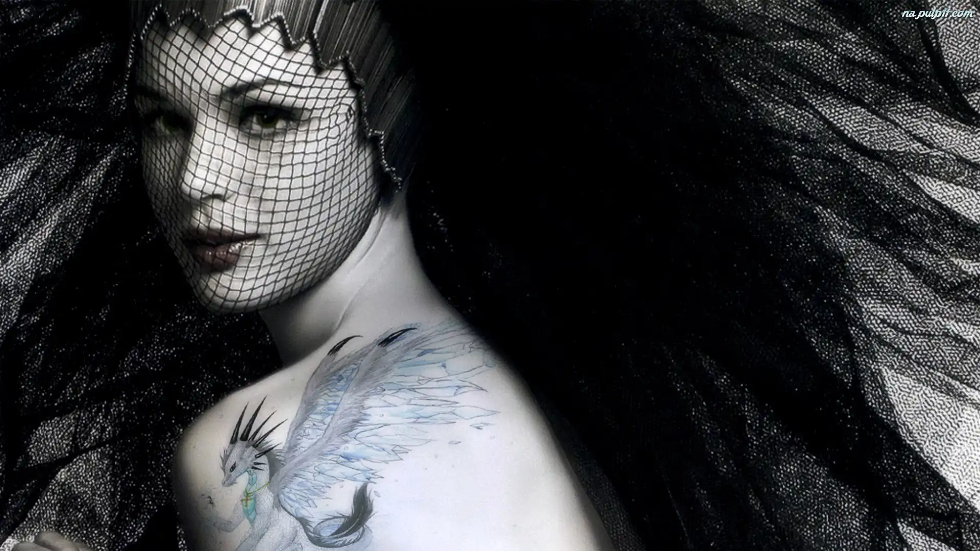 Woalka, Czarny, Tatuaż, Kobieta, Welon