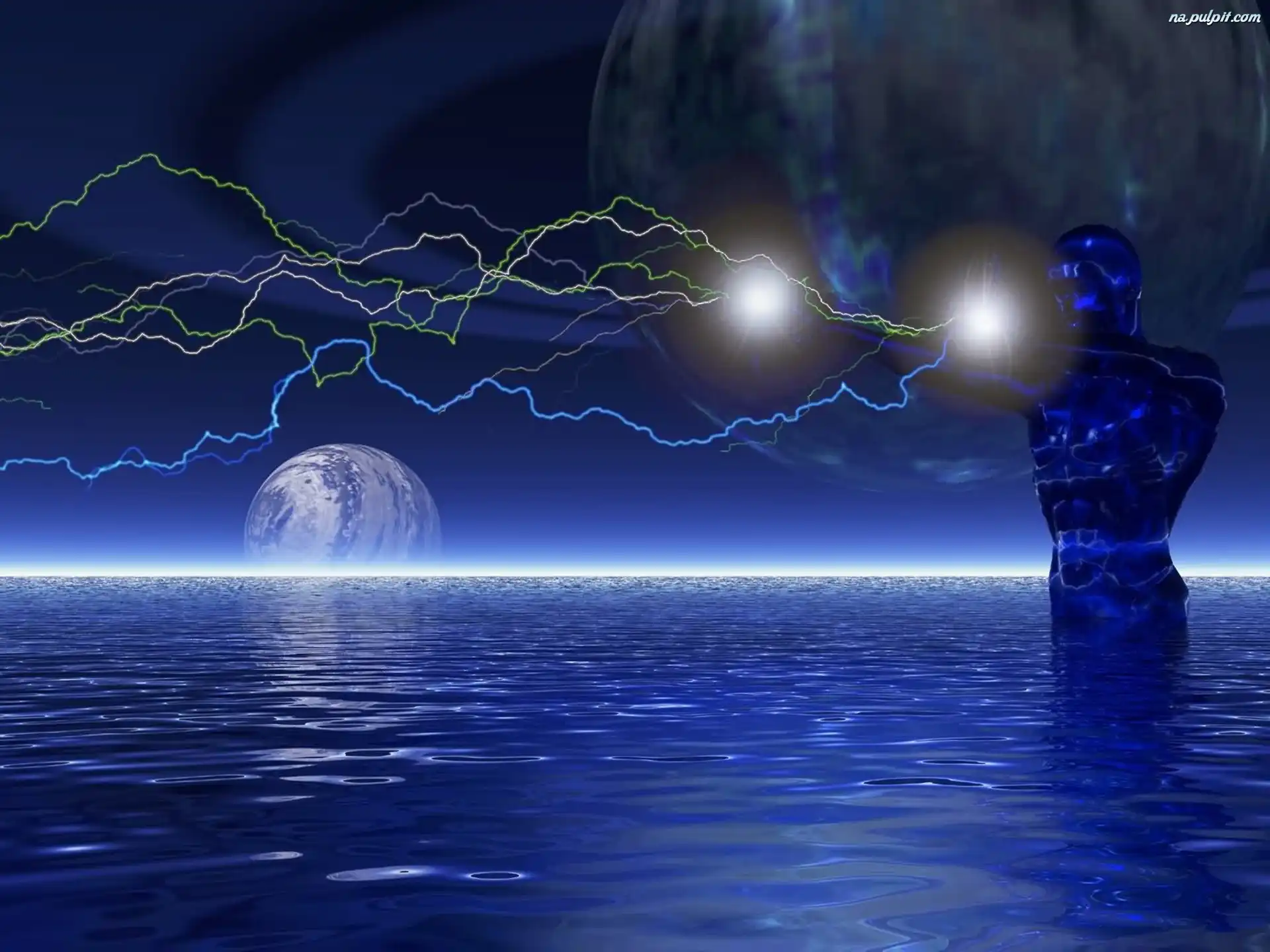 woda, Wektorowa, 3D, osoba Na Pulpit