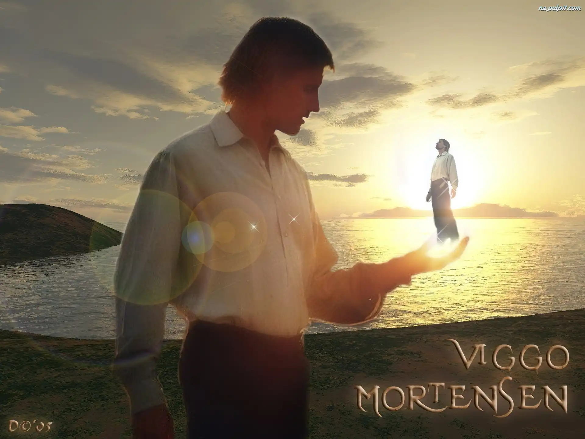 woda, Viggo Mortensen, biała koszula Na Pulpit