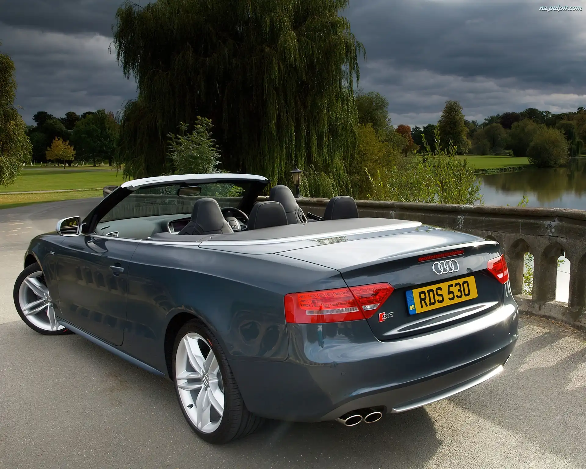 Cabrio, Woda, Zieleń, Ciemne, Audi A5, Niebo Na Pulpit
