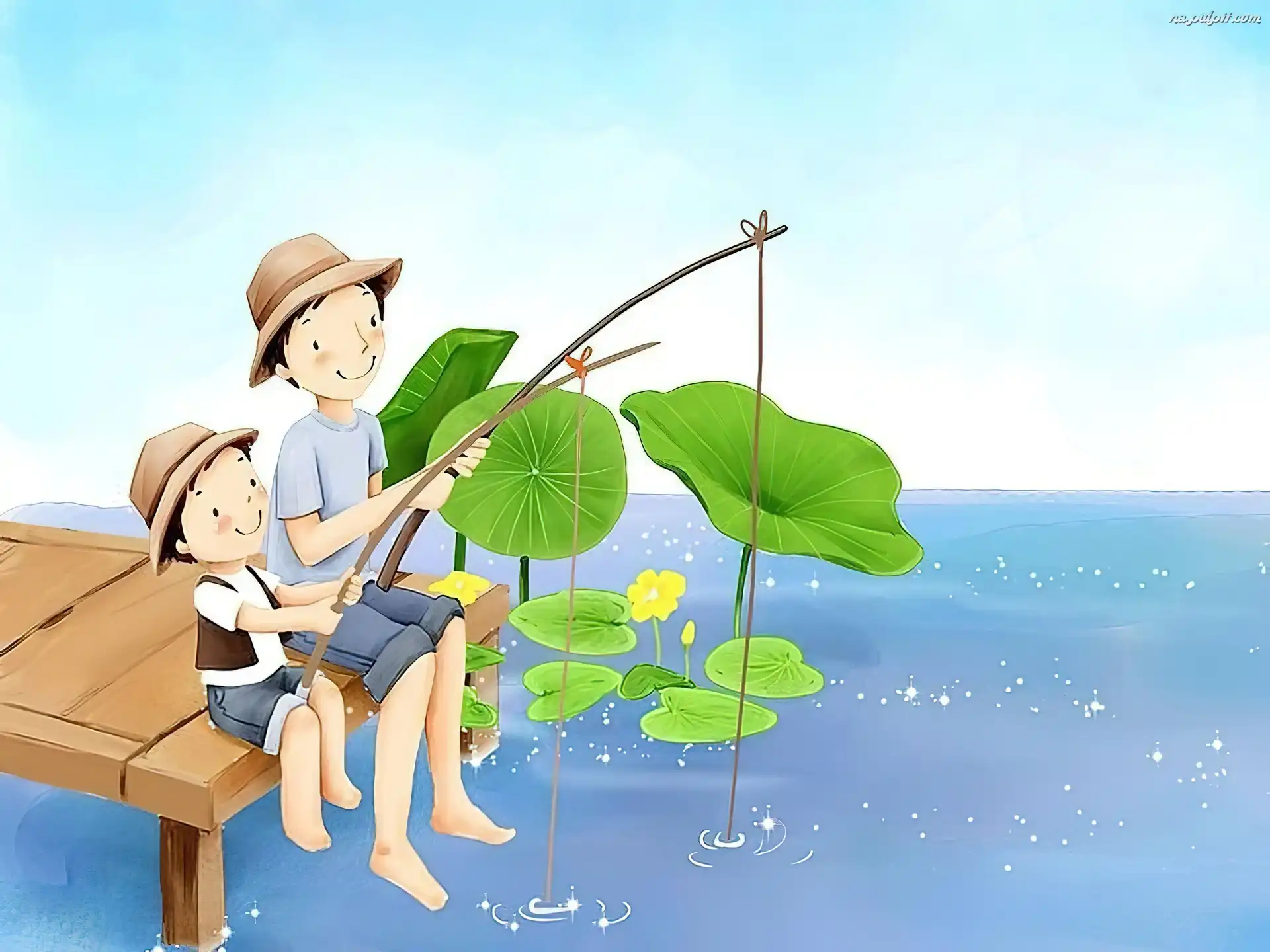 Woda, Pomost, Chłopcy, Wędki Na Pulpit