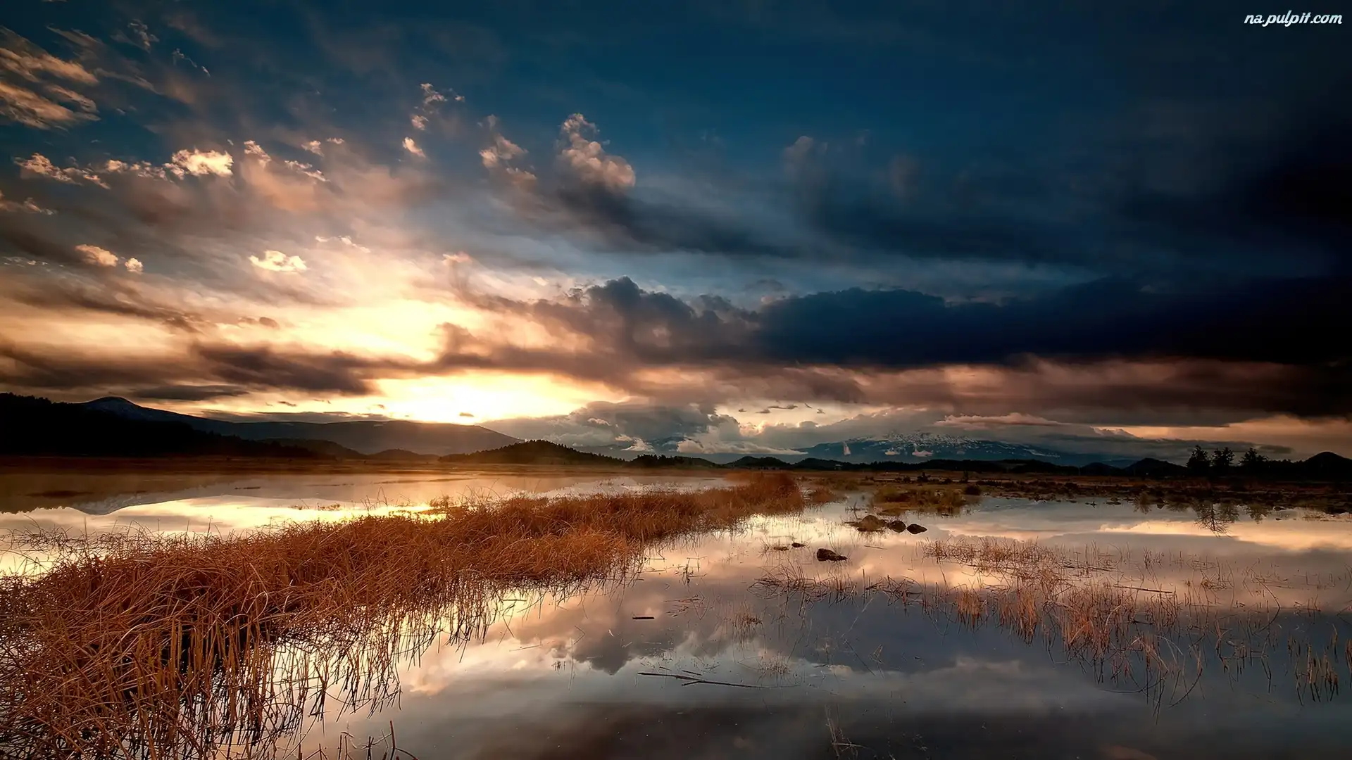 Woda, Zachód, Góry, Chmury, Słońca Na Pulpit
