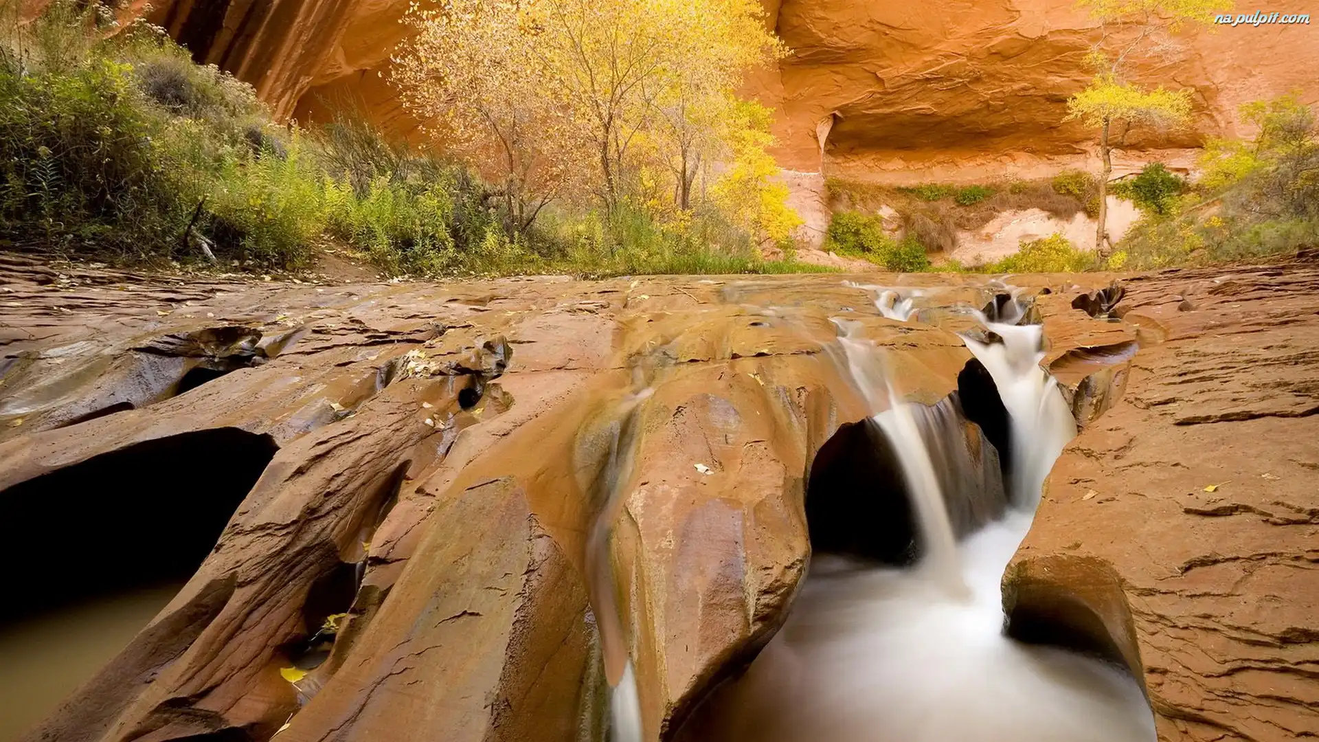 Woda, Skały, Drzewa, Spływająca Na Pulpit