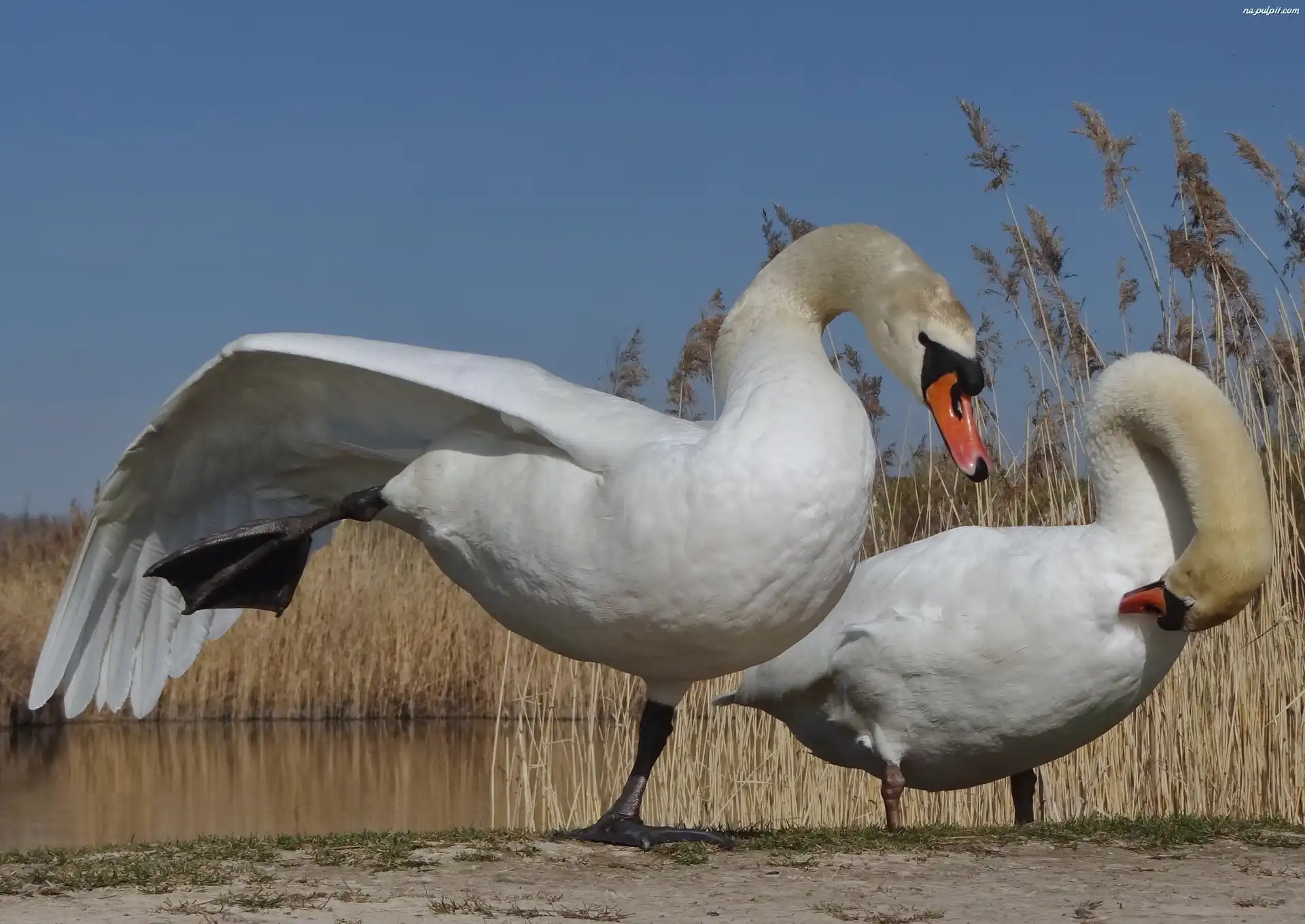 Woda, Łabędzie, Dwa, Niebo Na Pulpit