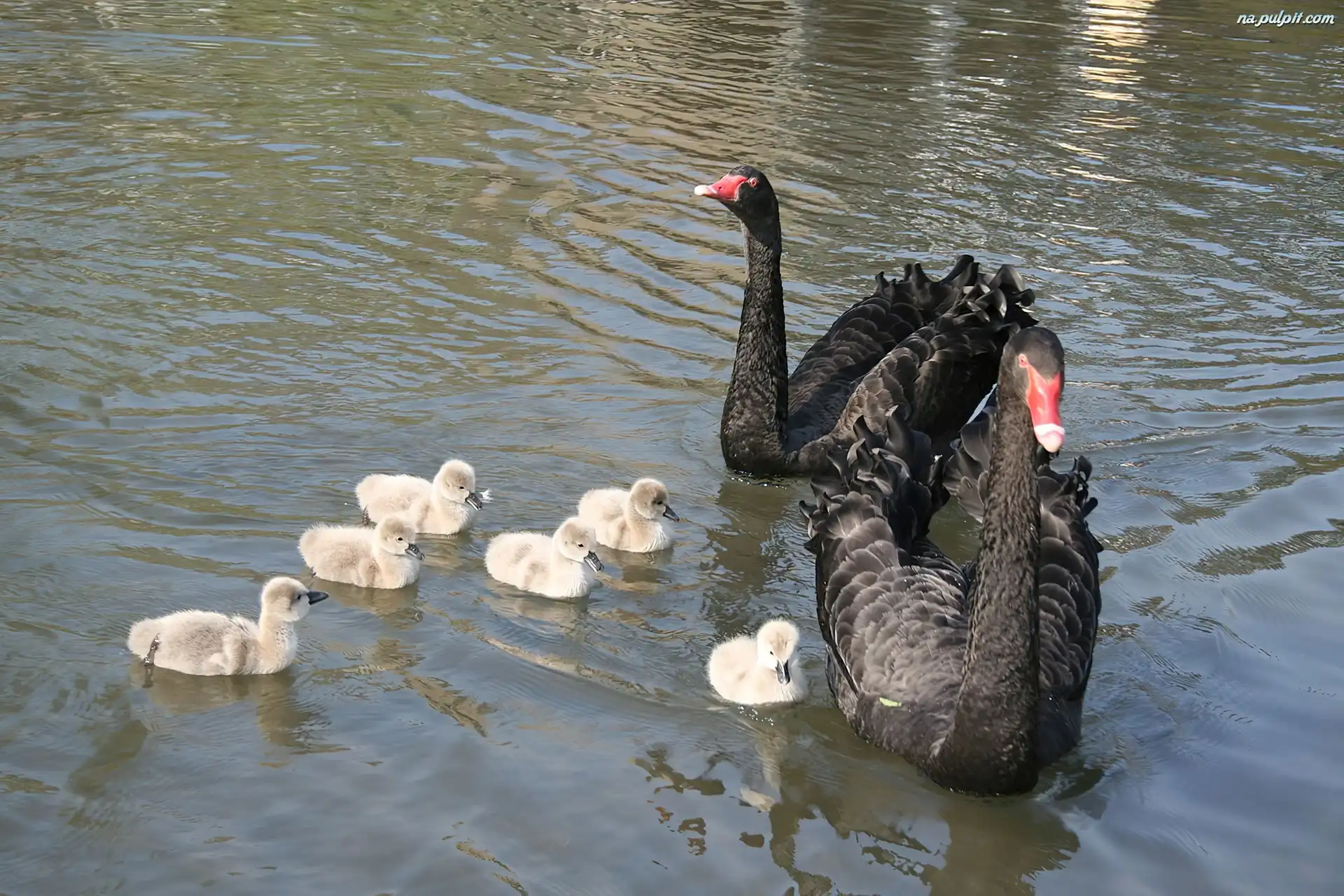 Woda, Łabędzie, Czarne, Dwa, Młode Na Pulpit