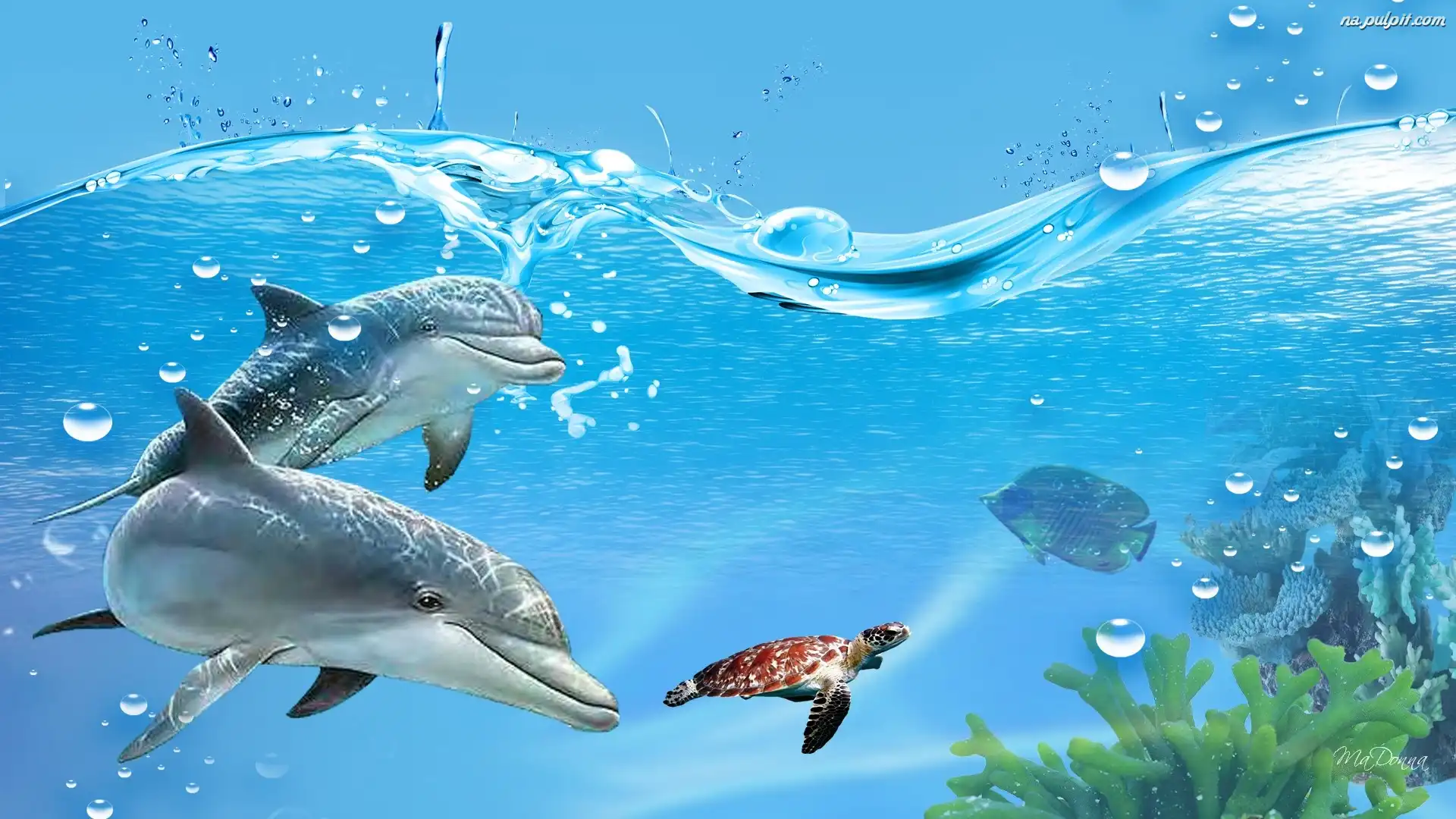 Woda, Delfiny, Dwa, Żółw Na Pulpit