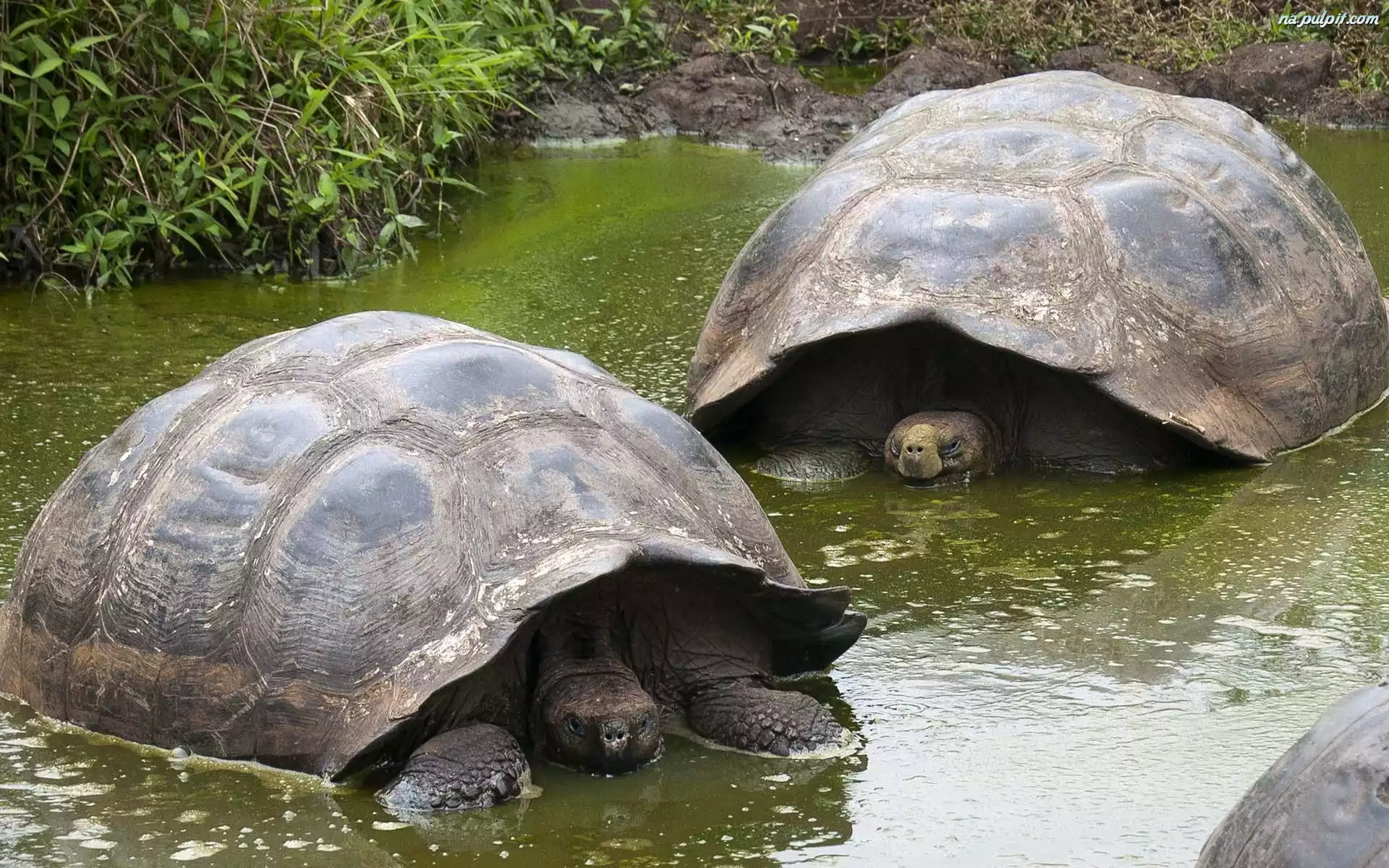 Woda, Duże, Dwa, Żółwie Na Pulpit