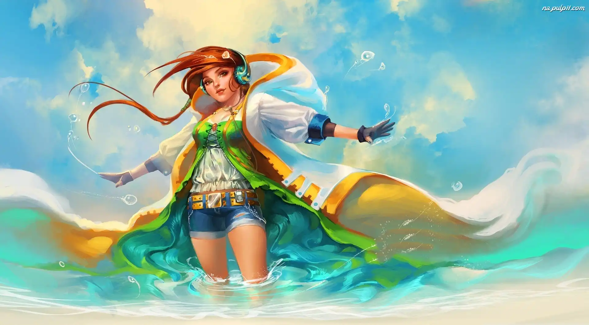 Woda, Słuchawki, Dziewczyna, Peleryna
