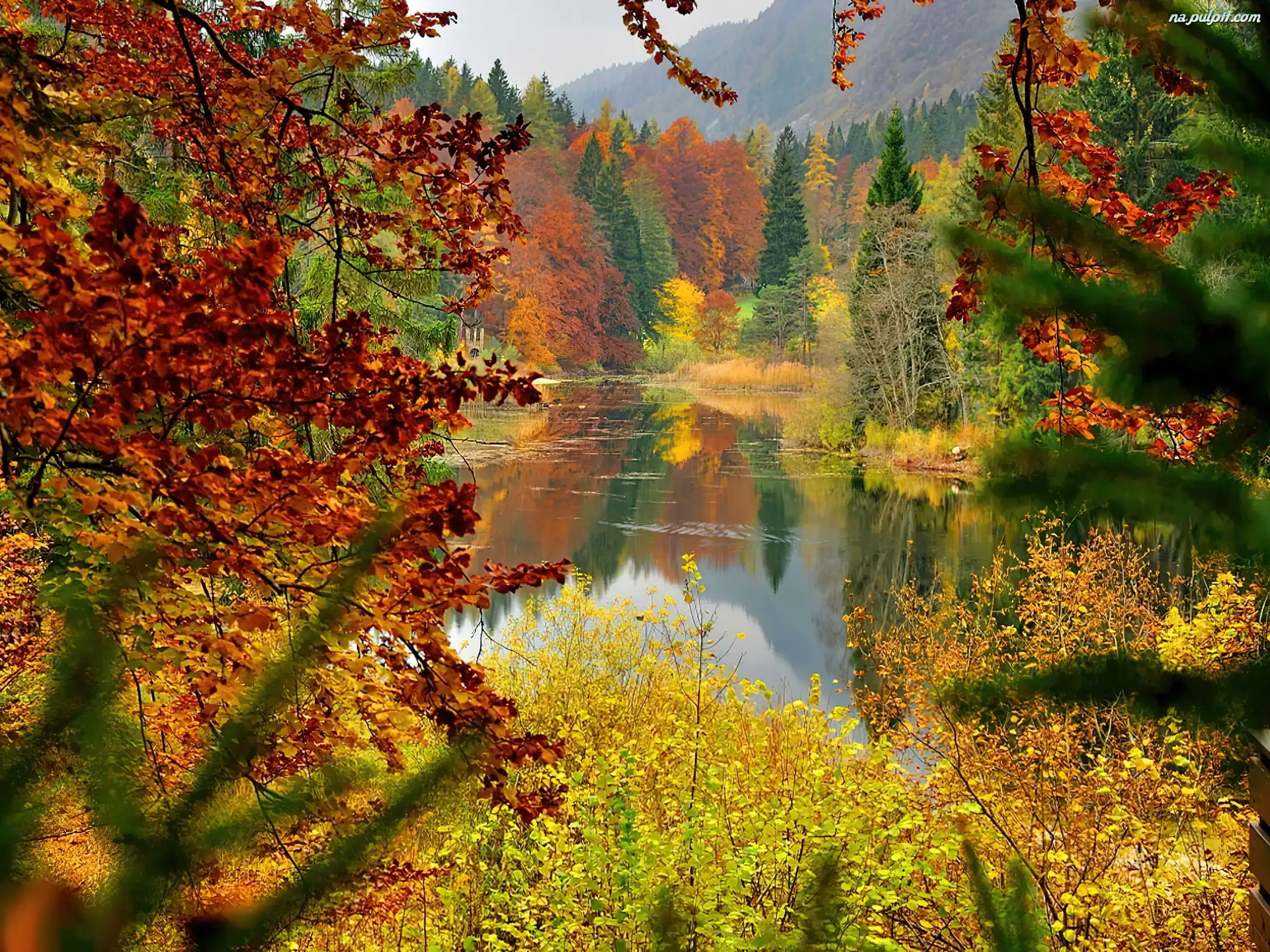 Woda, Las, Góry, Jesień Na Pulpit