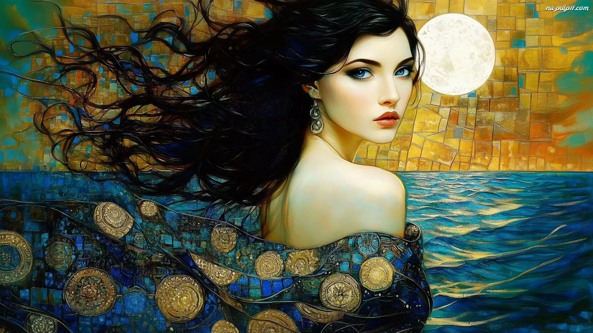 Księżyc, Dziewczyna, Kolczyki, Woda, Brunetka, Grafika Na Pulpit