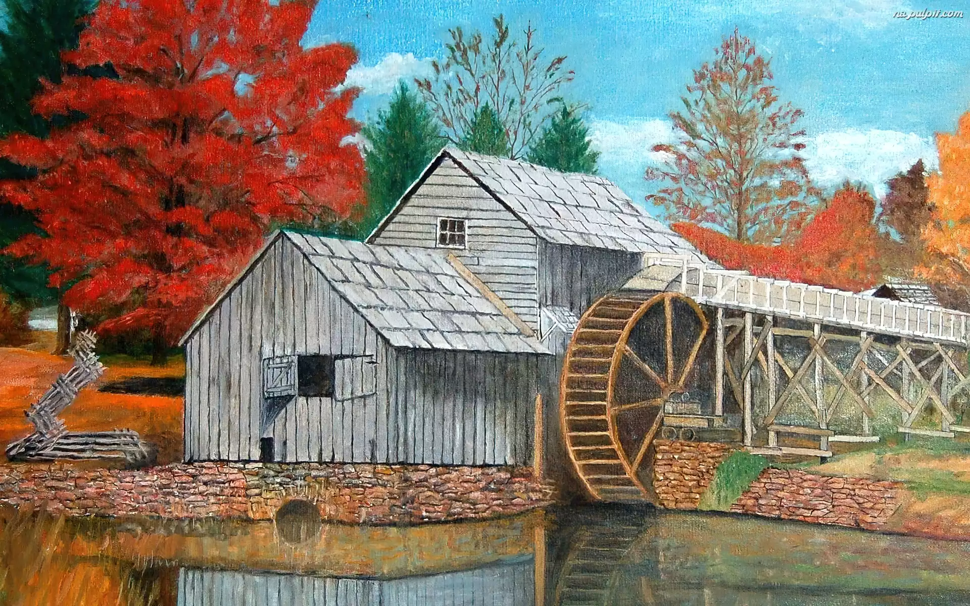 Woda, Drzewa, Jesień, Młyn Na Pulpit