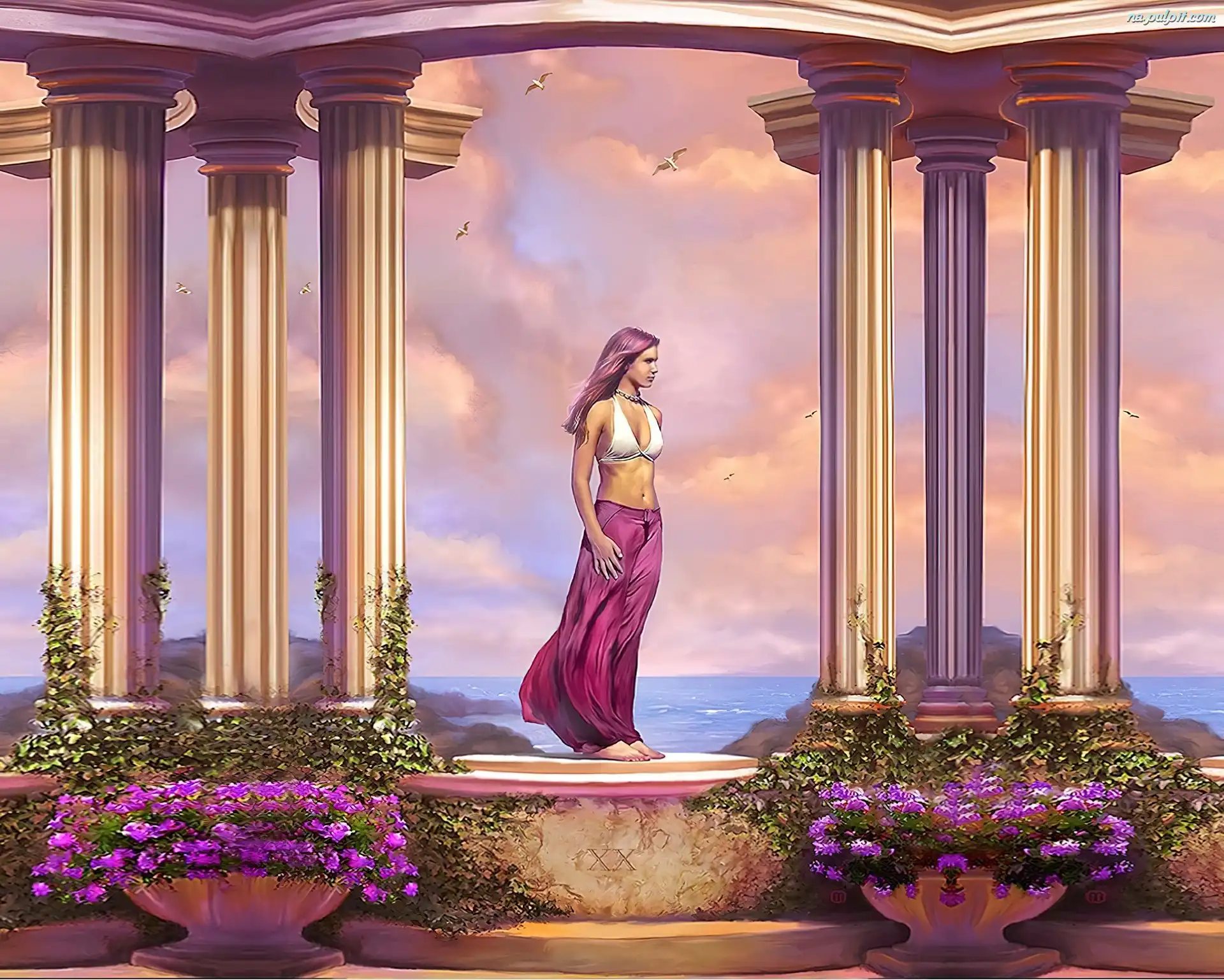 Woda, Filary, Kobieta, Kwiaty Na Pulpit
