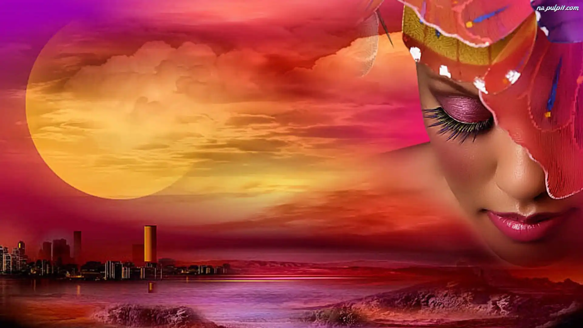 Woda, Zachód, Makijaż, Kobieta, Słońca Na Pulpit