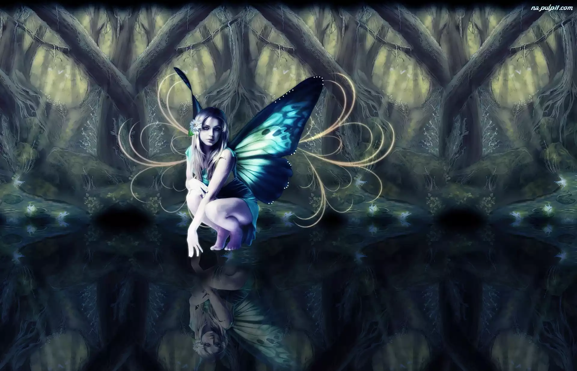 Woda, Motyl, Kobieta, Drzewa Na Pulpit