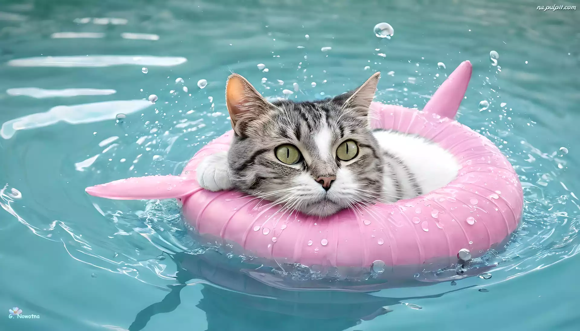Kot, Woda, Koło ratunkowe, Grafika Na Pulpit