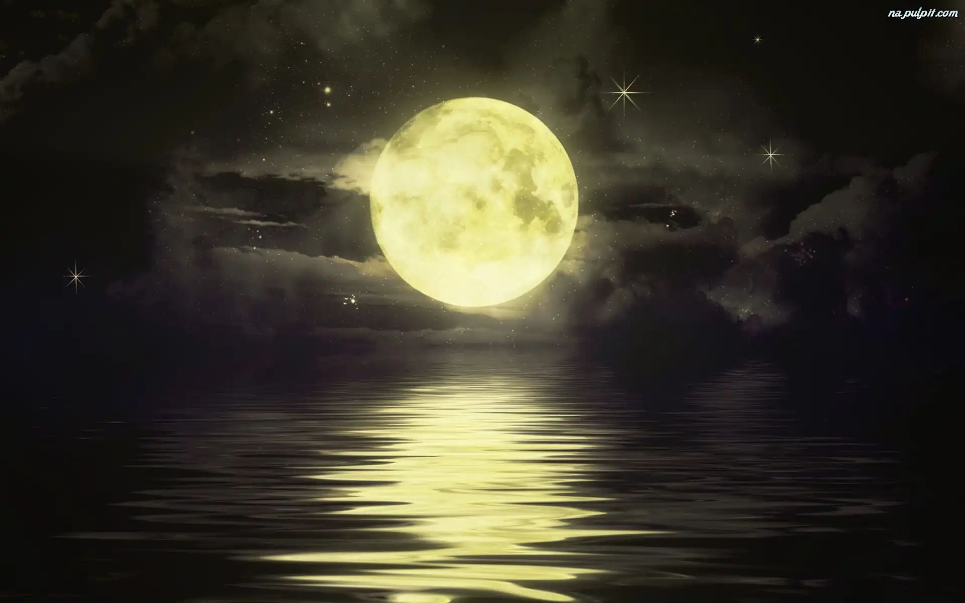 Woda, Gwiazdy, Księżyc, Chmury Na Pulpit