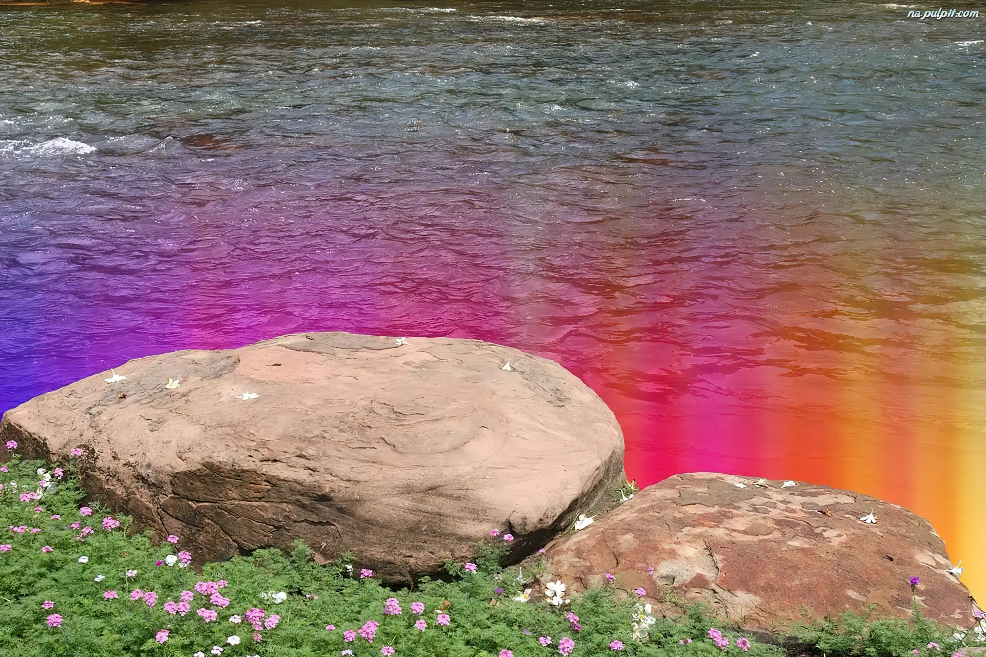 Woda, Kamienie, Kwiatki, Kolorowa
