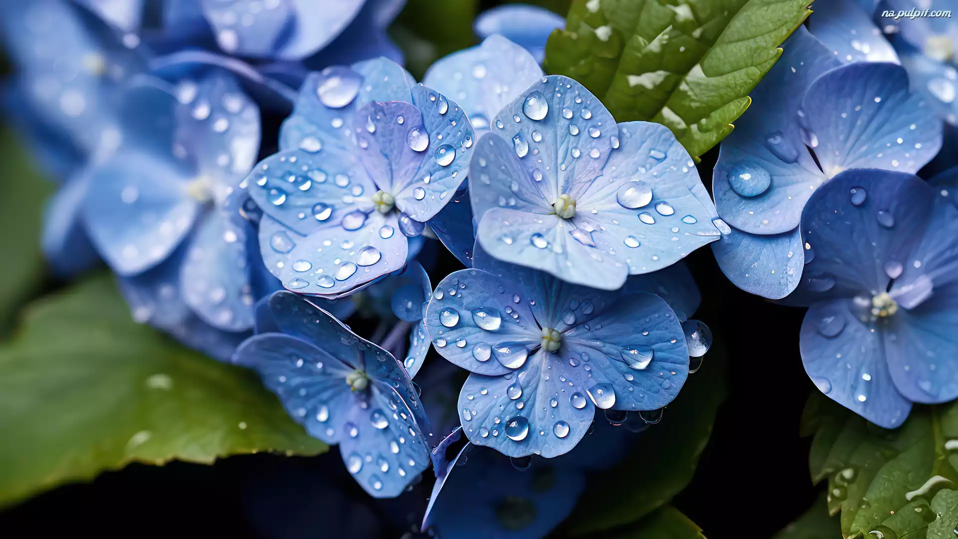 Niebieskie, Hortensje, Krople, Woda Na Pulpit