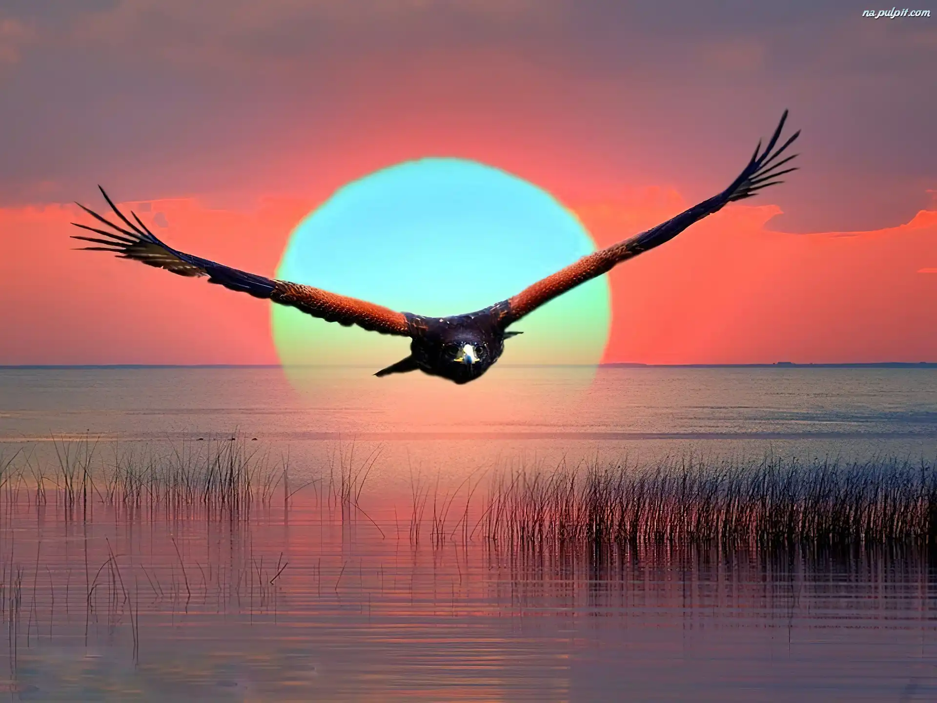Woda , Zachód, Orzeł, Słońca Na Pulpit