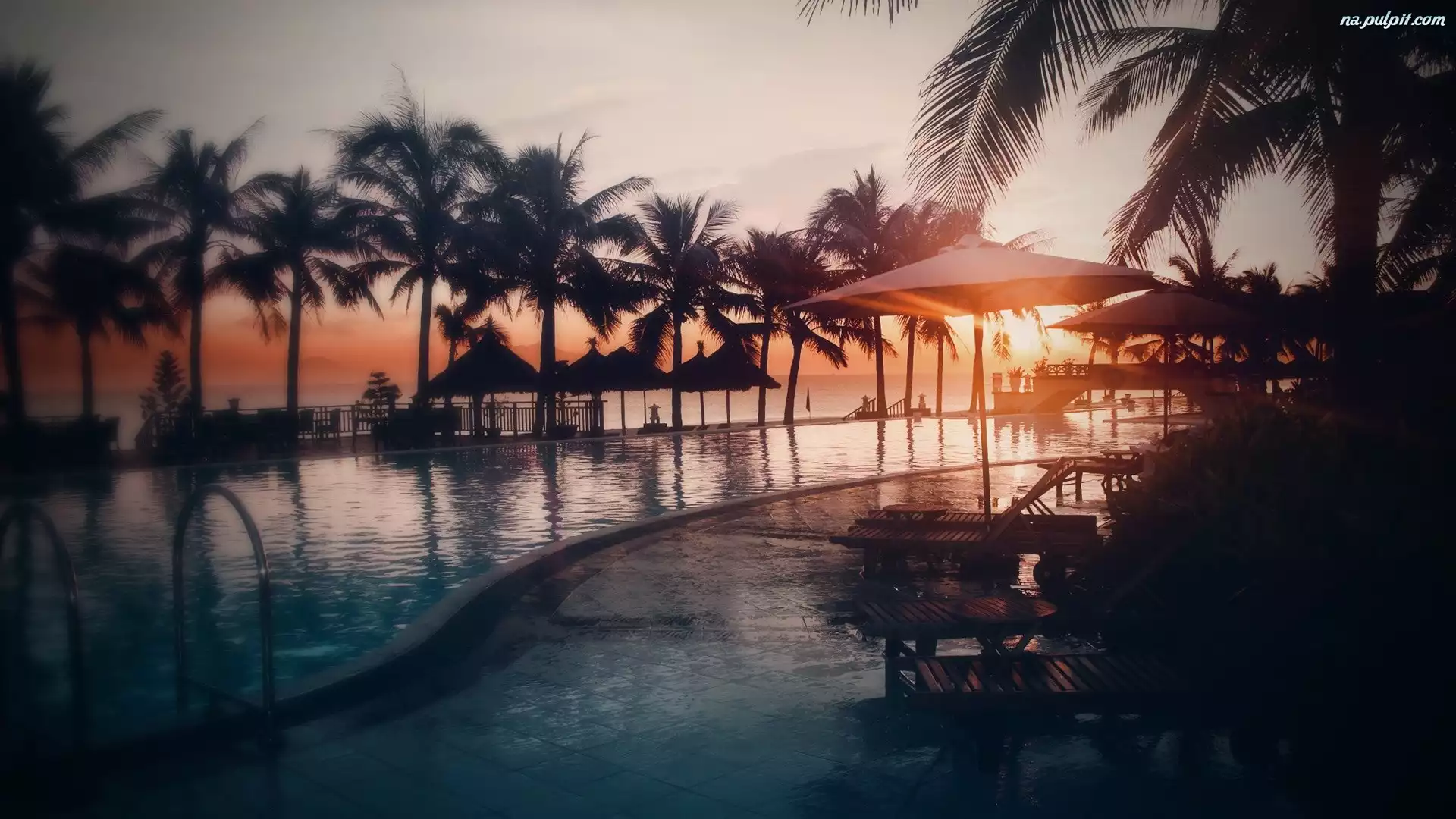 Woda, Leżak, Palmy, Parasole Na Pulpit