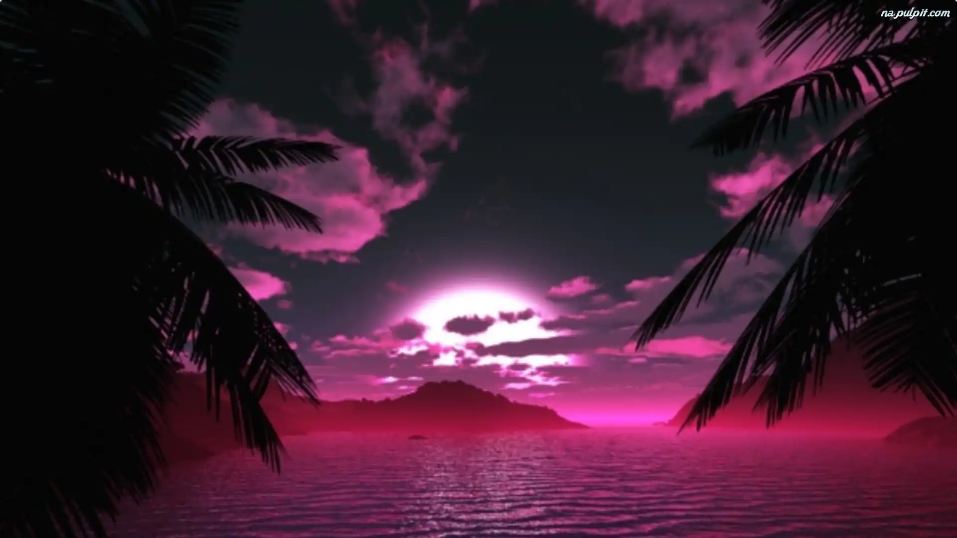 Woda, Słońca, Zachód, Różowy, Palmy Na Pulpit