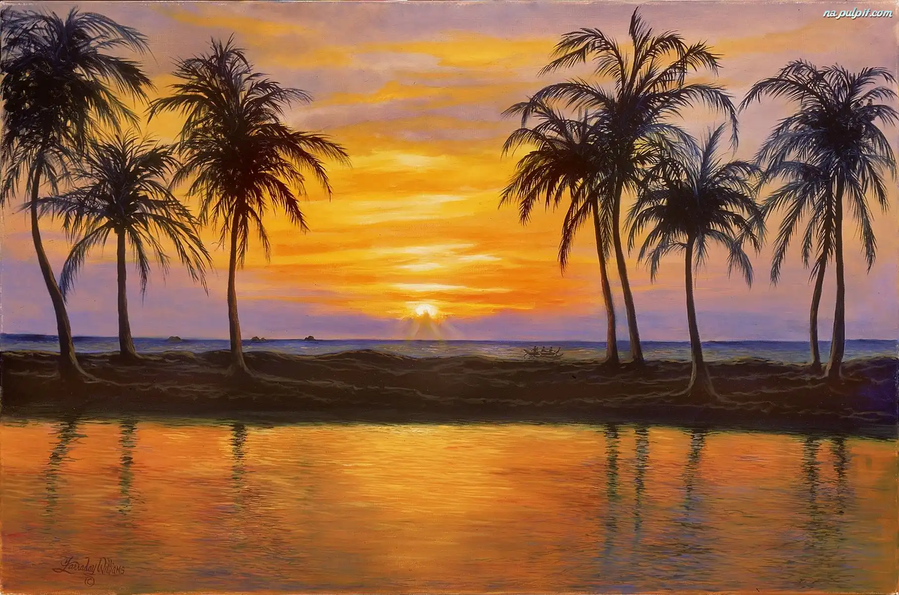 Woda, Zachód Słońca, Palmy Na Pulpit