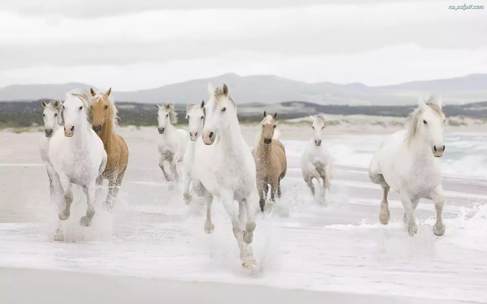 Woda, Białe, Stado, Konie Na Pulpit