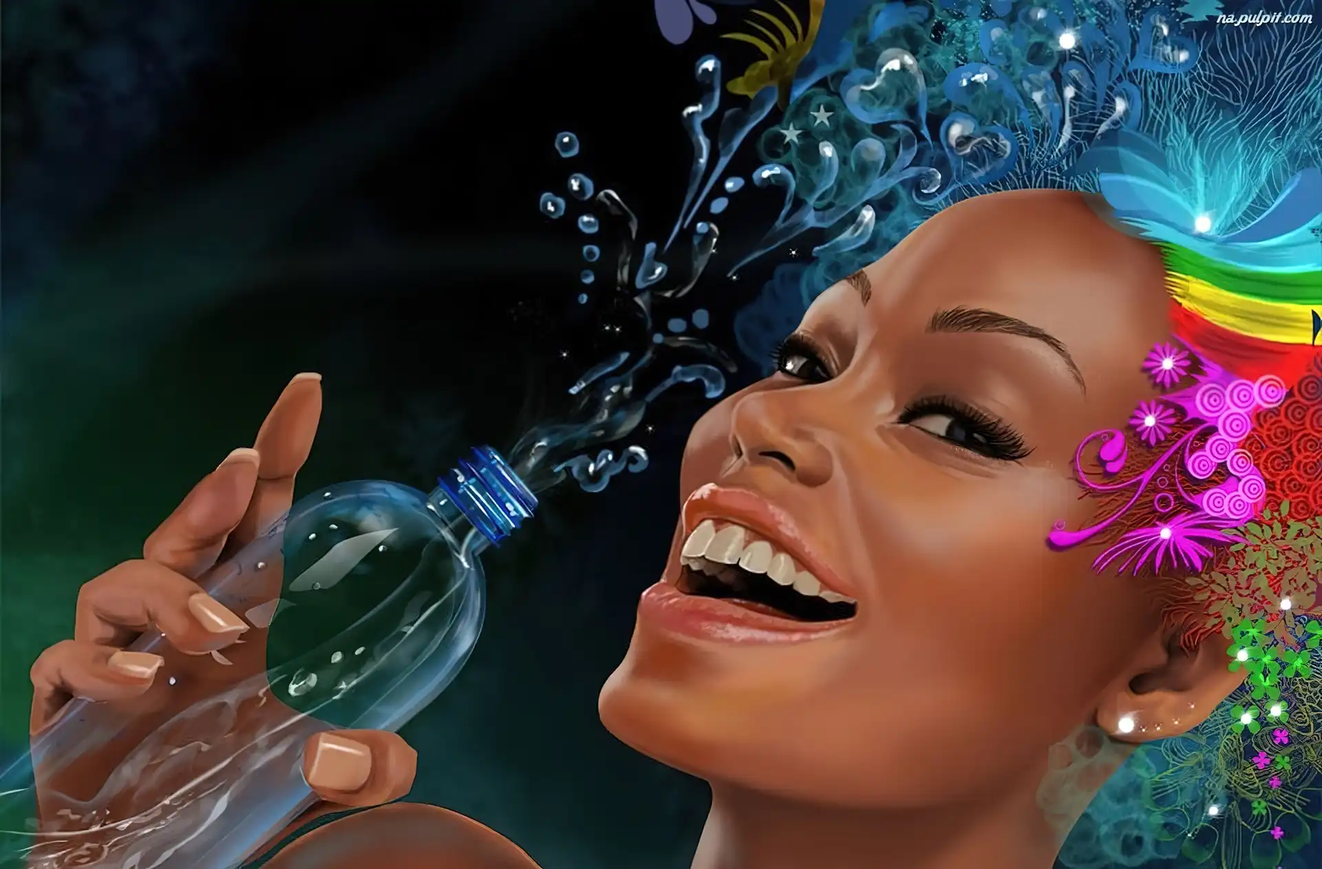 Woda, Kobieta, Wesoła, Butelka Na Pulpit