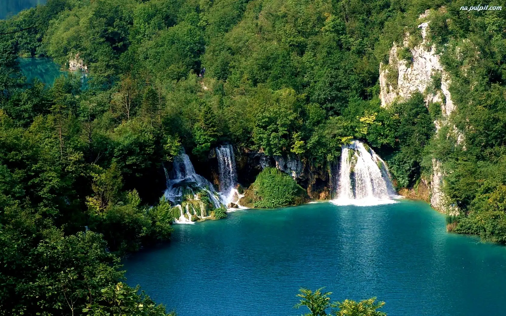 Woda, Drzewa, Wodospad, Błękitna Na Pulpit