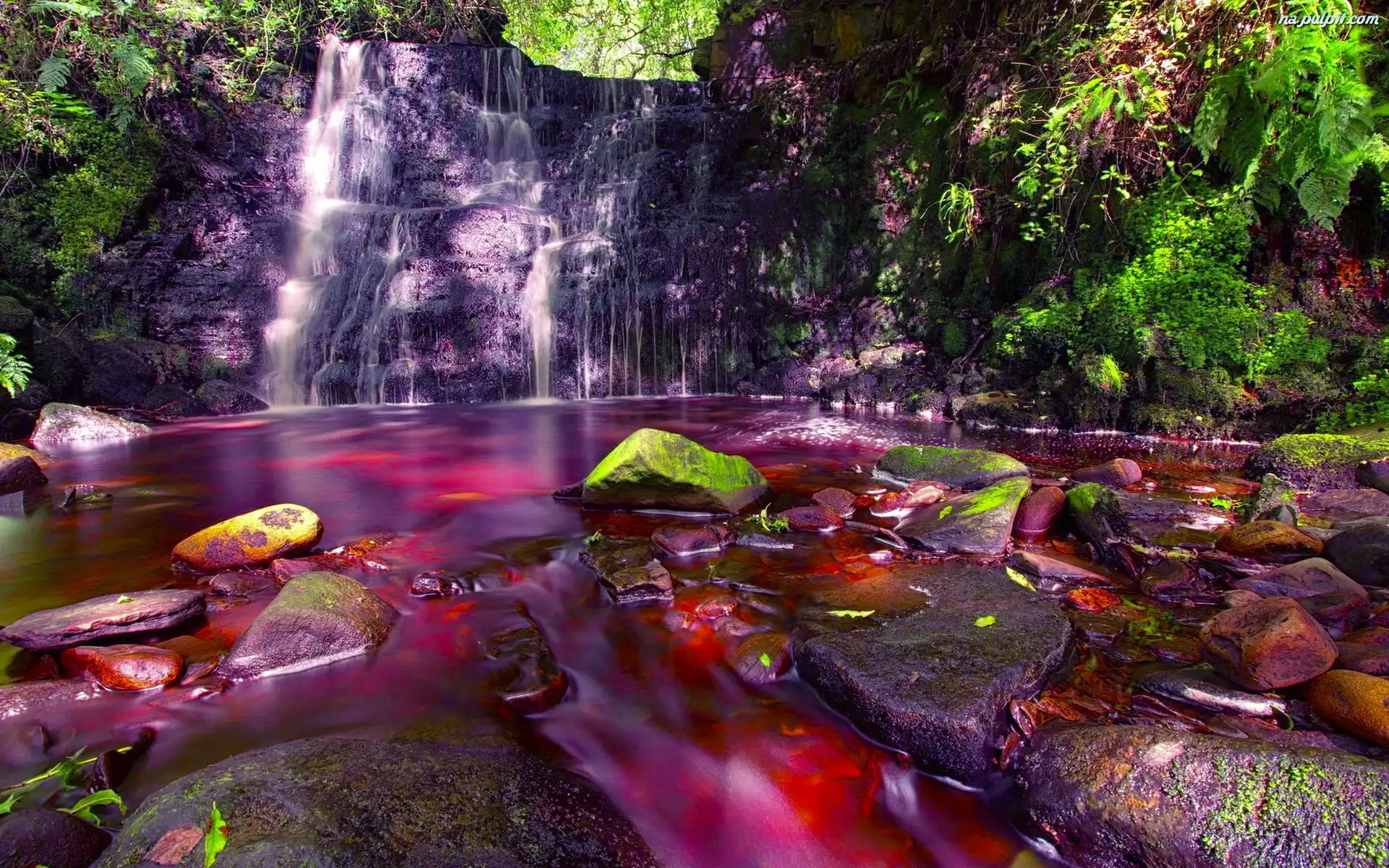 Woda, Lesie, W, Wodospad, Czerwona Na Pulpit