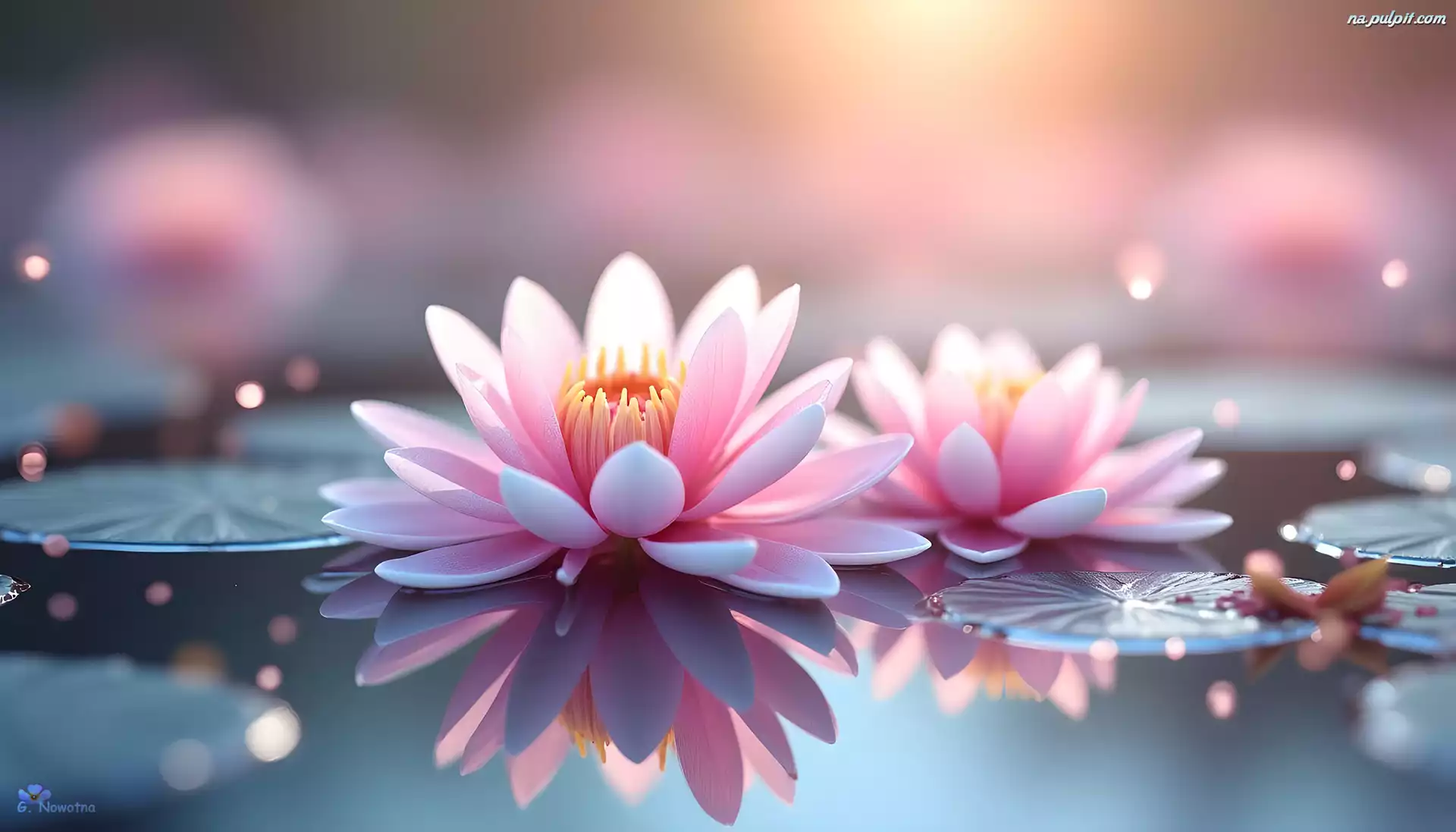 Woda, Różowe, Lilie wodne, Grafika, Kwiaty Na Pulpit