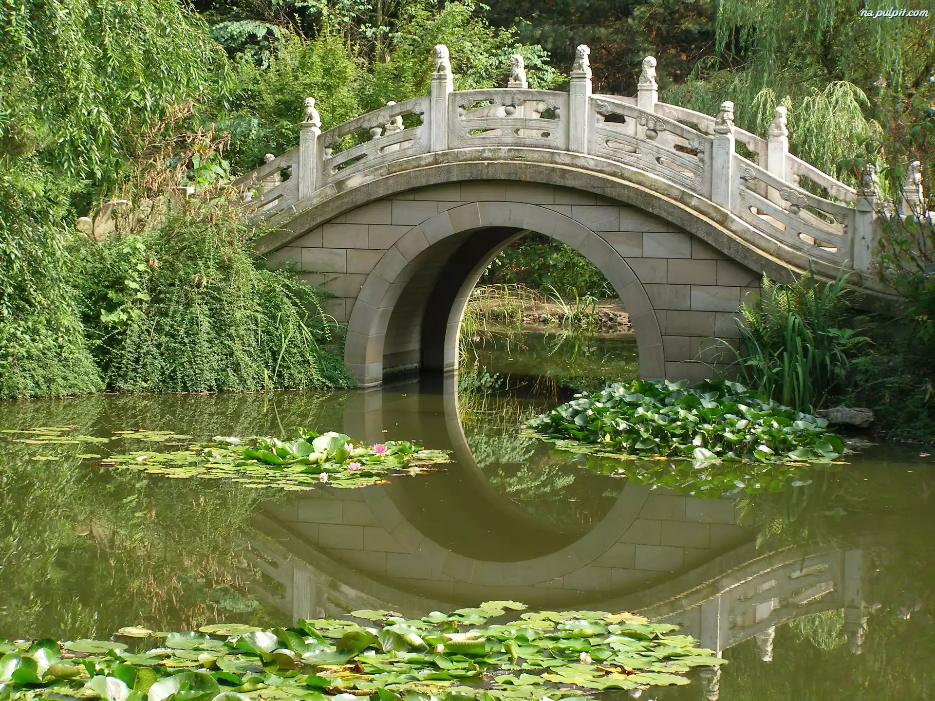 Wodne, Most, Staw, Park, Lilie Na Pulpit