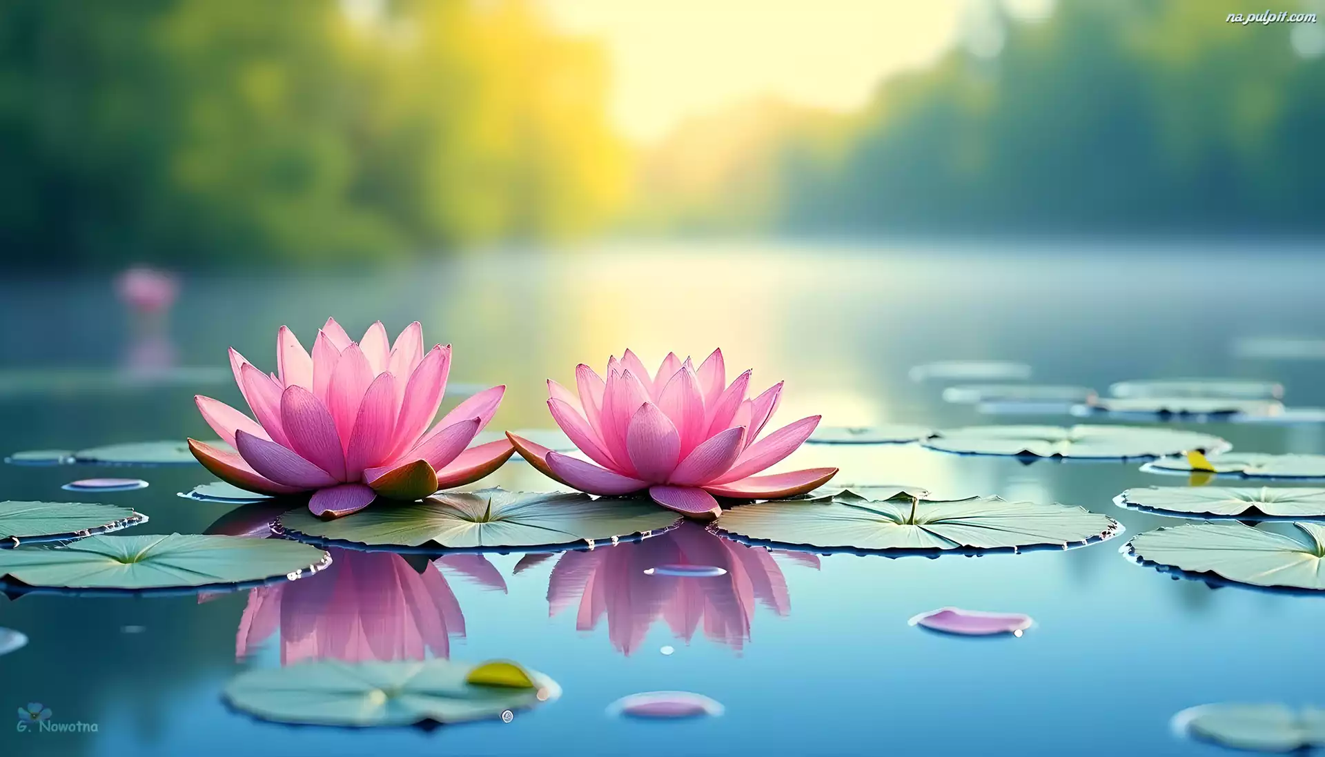 Lilie wodne, Różowe, Kwiaty, Grafika Na Pulpit