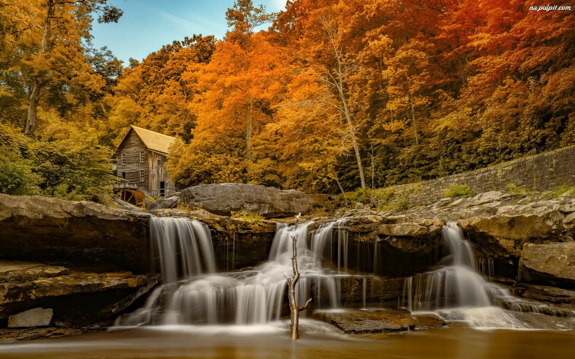 Wodny, Las, Jesień, Rzeka, Młyn, Wodospad