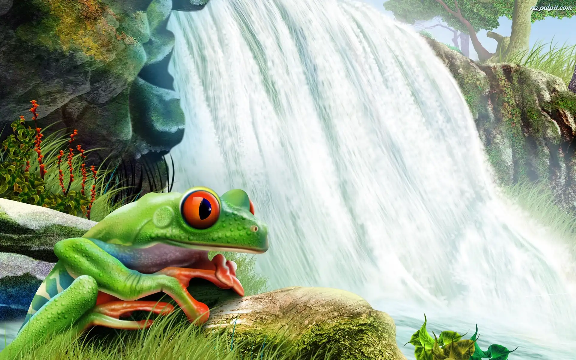 Art, Wodospad, Żabka Na Pulpit