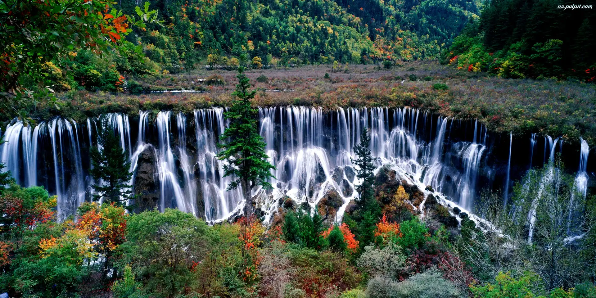 Yellowstone, Wodospad, Park Wodospad Jesie艅, Li艣cie Jesie艅, Krajobraz Jesie艅, G贸ra, Drzewa Kajakarstwo, Wodospad Wodospad, Krajobraz, Kamienie Du偶y, Wodospad Pi臋kny Wodospad Jesie艅, Li艣cie Paprocie, G贸ra, Wodospady Ska艂a, W臋dkowanie, Wodospad T臋cza, Wodospad Wodospad